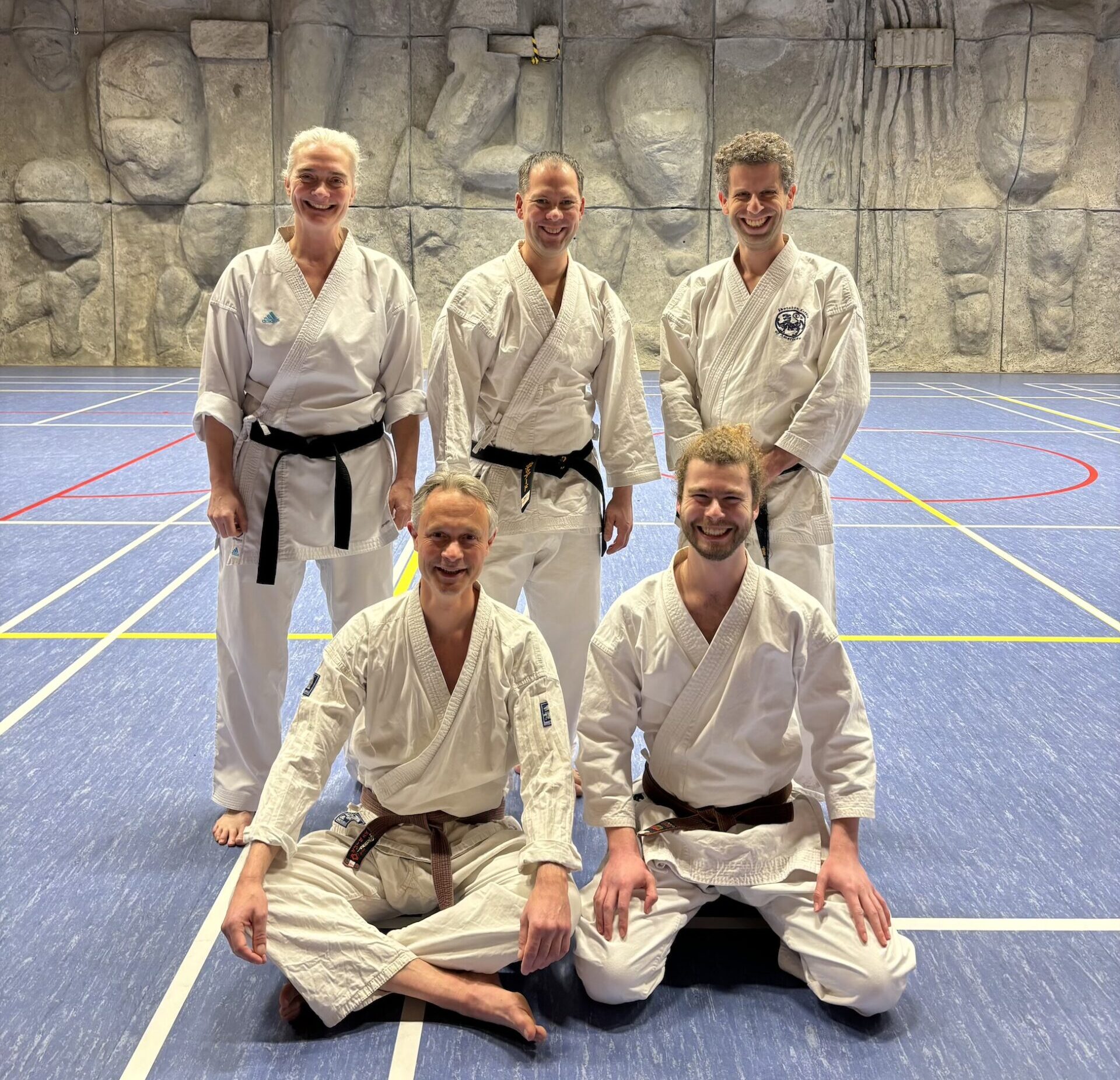 Met karateka’s van dojo’s uit Den Haag, Utrecht, Enschede, Berlijn en Haan hadden we een mooi internationaal gezelschap. Omdat er binnen die groepen ook weer meerdere nationaliteiten vertegenwoordigd zijn is Engels meestal de voertaal bij dit soort gelegenheden, wat alleen al een indrukwekkende hoeveelheid variaties van het woord “Enschede” opleverde.
